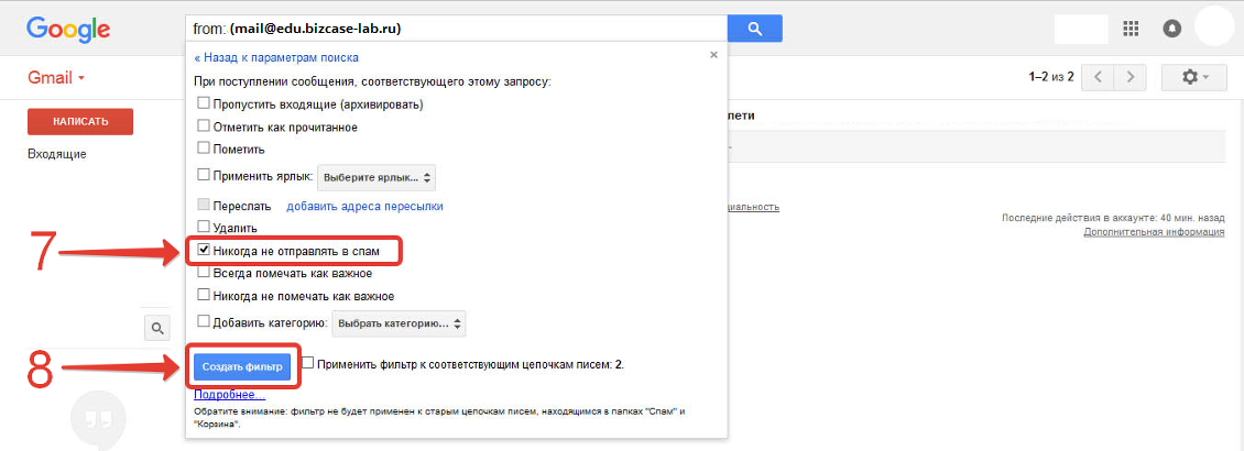 8) И далее «Создать фильтр».