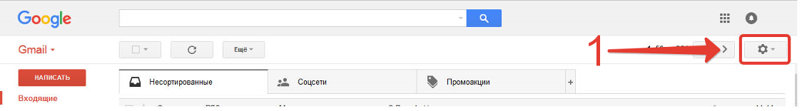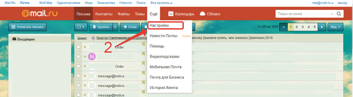 1) В правом верхнем углу меню почты кликните на вкладку «Еще».