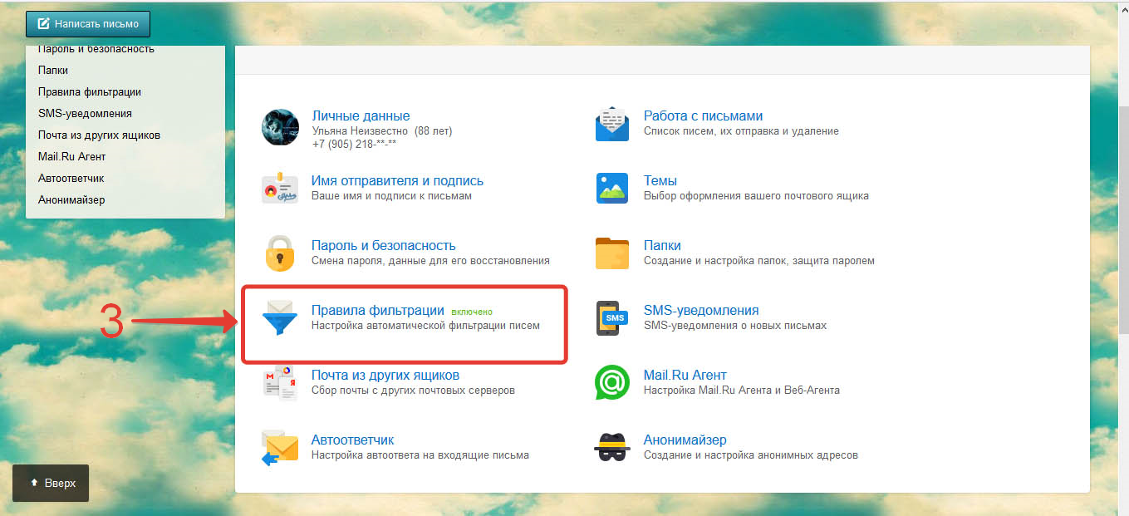 3) На странице настроек нажмите на кнопку «Правила фильтрации».