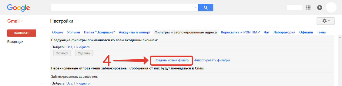 4) Далее нажмите «Создать новый фильтр».